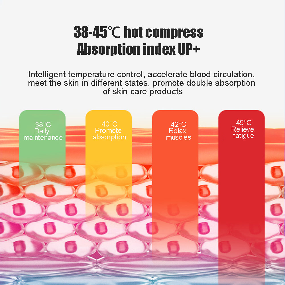 --38℃-45℃ hot compress open pores and 11000±2000 rpm high- frequency vibration massage make nutrients to reach deep into the skin for better absorption;